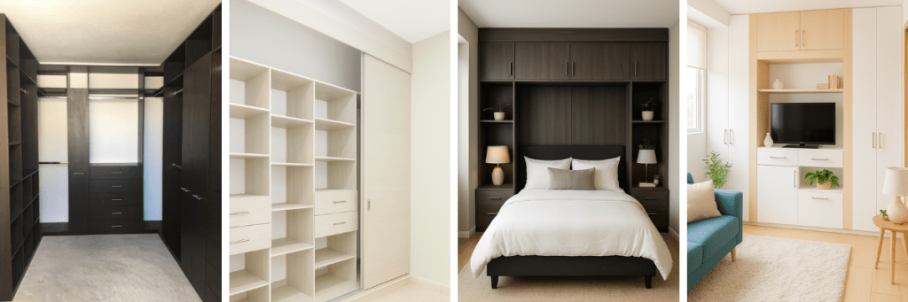 | Empotrado | Melamina, MDF, madera natural | Q3,500 – Q8,000 | Integración total, optimiza espacio | Habitaciones con poco espacio |