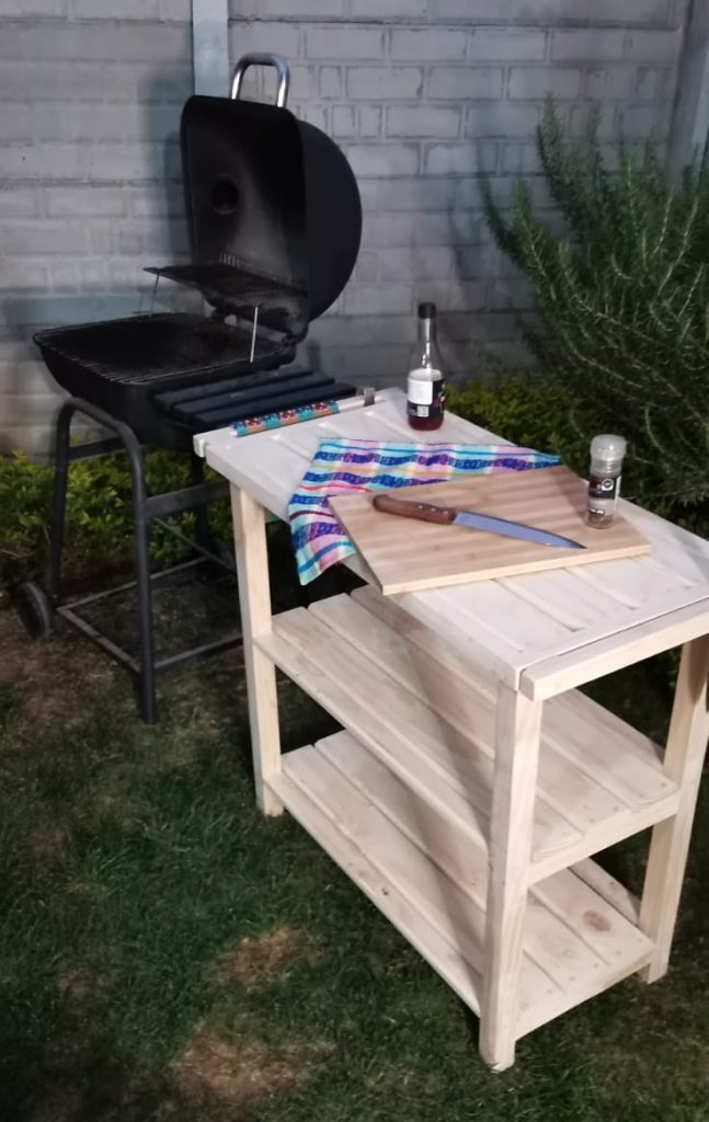 También, una mesa auxiliar en la churrasquera puede ser el lugar perfecto para guardar utensilios de parrilla y herramientas de cocina al aire libre, como abridores de botellas y cepillos para barbacoa. También puedes utilizarla como una mesa de apoyo para tus bebidas y aperitivos mientras disfrutas de un día soleado de parrilla.